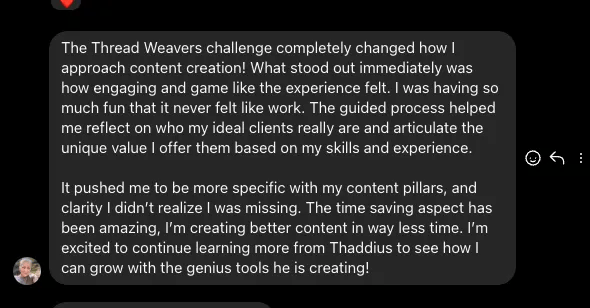 | ThreadWeavers Challenge Completed! ![]() My First Testimonial! @teri_smart_ completes thes 2-Day content creation challenge! 100% OFF - Coupon Code |