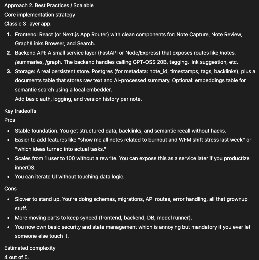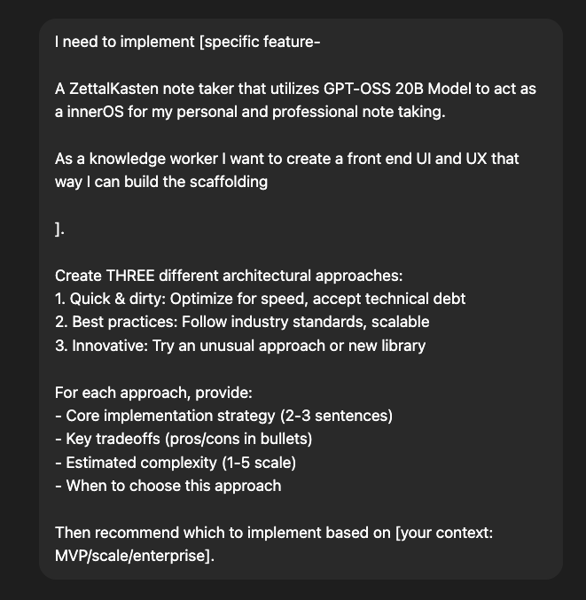 Then recommend which to implement based on [your context: MVP/scale/enterprise].Why This Works: