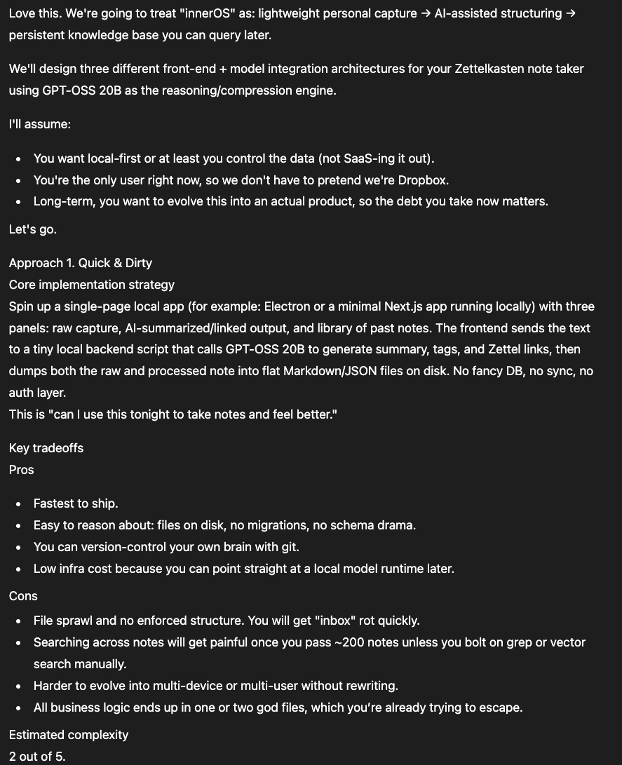 Setup: Stop building one solution. Build three simultaneously and pick the winner.