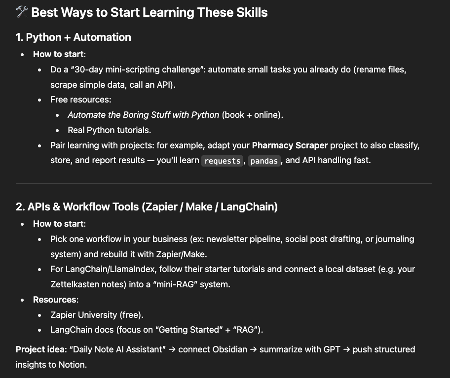 Prompt 3: "What's the best way for me to start learning these skills?"